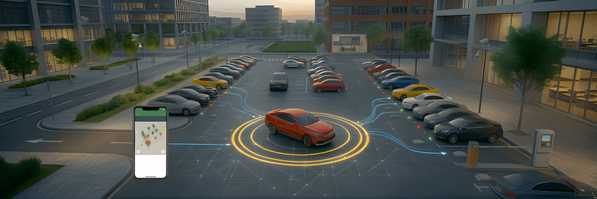 حساسات مواقف السيارات: يتم تركيبها في كل موقف بشكل فردي للكشف عن وجود المركبة من عدمه، وتقوم بإرسال هذه البيانات مباشرة إلى النظام المركزي.